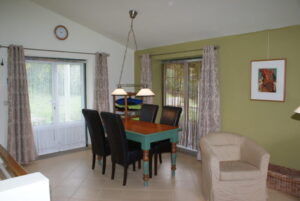 • Living room with cosy dining and sitting area. French windows lead out to your own private terrace and garden