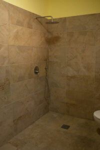 - Large bedroom of 18.5 sq m with large double bed and French window leading to the veranda which has outdoor shower facilities